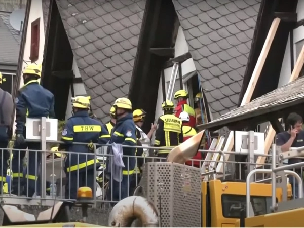 Κατά το ΑΠΕ-ΜΠΕ, οκτώ άτομα παγιδεύτηκαν στα συντρίμμια του ξενοδοχείου «Reichschenke zum Ritter Götz» στην Κρεβ της Ρηνανίας - Παλατινάτου, όταν χθες τη νύχτα κατέρρευσε μέρος της στέγης του.