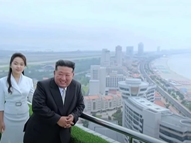 Ο Κιμ και η κόρη του, φωτογραφήθηκαν επίσης σε μια παραλία μήκους 4 χιλιομέτρων, περιτριγυρισμένη από αξιωματούχους και με κάτι που φαίνεται να είναι ξενοδοχεία στο βάθος.