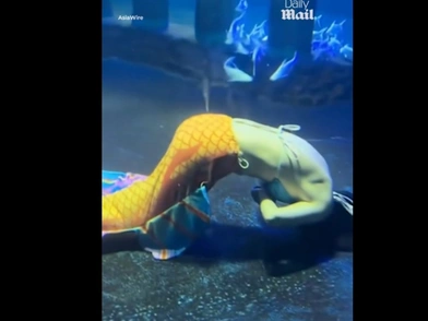 Τρομακτική ήταν η στιγμή που μια καλλιτέχνιδα γοργόνα στην Κίνα στο πάρκο ψυχαγωγίας Taiyuan Ocean World έχασε τις αισθήσεις της κάτω από το νερό και βυθίστηκε φαινομενικά άψυχη μπροστά στο κοινό.
