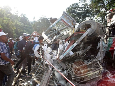 Βίντεο που δημοσιοποιήθηκαν από το σημείο που έλαβε χώρα το περιστατικό, κατέγραψαν κατεστραμμένα οχήματα και συντρίμμια διάσπαρτα στον δρόμο στη νότια περιοχή Κάουκα.