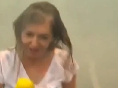 Η δημοσιογράφος βρέθηκε στο λάθος σημείο, τη λάθος στιγμή και κατέληξε να δέχεται πολλά κυβικά νερού που έριξε το αεροσκάφος και αναγκάστηκε να διακόψει τη μετάδοση, μη μπορώντας να αρθρώσει λέξη.
