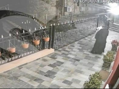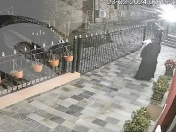 Στη συνέχεια, σύμφωνα με το sigmalive, καταγράφεται η φιγούρα ενός μοναχού να κατευθύνεται προς το σημείο που μόλις κάποια δευτερόλεπτα προηγουμένως διακρινόταν το όχημα. Ο μοναχός περνά με γρήγορο βηματισμό από το σημείο και χάνεται.