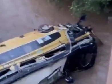 Σύμφωνα με το ΑΠΕ-ΜΠΕ, αποτέλεσμα της σύγκρουσης, το λεωφορείο πήρε κλίση και έπεσε από τη γέφυρα στην κοίτη ενός ποταμού, σε βάθος αρκετών μέτρων.