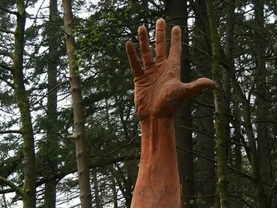 Αποφάσισε τότε να σκαλίσει ένα γιγάντιο χέρι, που συμβολίζει τους γίγαντες, και την τελευταία προσπάθεια του δέντρου να παραμείνει ζωντανό και να ψηλώνει.
