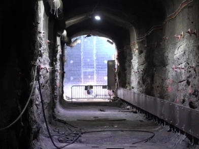 Καθώς η σήραγγα μήκους 4,5 χιλιομέτρων αρχίζει να καταρρέει, φαίνεται ένα τυπικό σήμα κυκλοφορίας για όριο ταχύτητας 20 χλμ./ώρα. Υπάρχουν επίσης πράσινες πινακίδες στον τοίχο της σήραγγας σε κοντινές αποστάσεις που δείχνουν σε τι ύψος είστε από την επιφάνεια