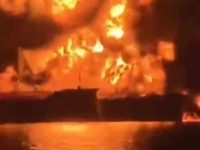 Το τηλεοπτικό δίκτυο αλ Ιχμπαρίγια μετέδωσε πλάνα στα οποία διακρίνεται πλοίο στη θάλασσα από το οποίο υψώνονται πυκνοί καπνοί και φλόγες.