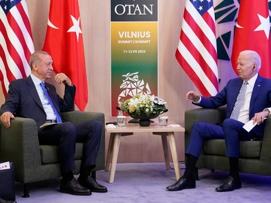 Η συνάντηση των δύο ηγετών έγινε στο περιθώριο της συνόδου του ΝΑΤΟ στο Βίλνιους της Λιθουανίας.
