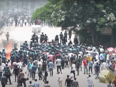 Νωρίτερα σήμερα διαδηλωτές πυρπόλησαν τις κεντρικές εγκαταστάσεις του κύριου δημόσιου τηλεοπτικού δικτύου του Μπαγκλαντές, BTV, και «πολλοί άνθρωποι είναι παγιδευμένοι μέσα», μετέδωσε σήμερα μέσο ενημέρωσης στην επίσημη σελίδα του στο Facebook.