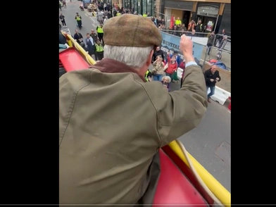 Εκείνη την ώρα, ο Νάιτζελ Φάρατζ βρισκόταν στην κορυφή του λεωφορείου του κόμματός του και χαιρετούσε τον κόσμο, ο οποίος είχε συγκεντρωθεί για την ομιλία του.