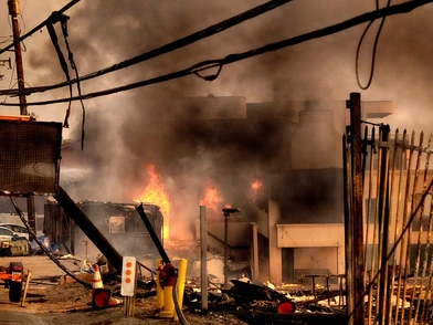 Τηλεοπτικά πλάνα δείχνουν αστυνομικούς να περιπολούν και να ζητούν από κατοίκους να φύγουν. Ελικόπτερα και αεροσκάφη έκαναν συνεχείς ρίψεις νερού στις φλόγες για να τις περιορίσουν, ενώ επιχειρούσαν επίσης μέλη του πυροσβεστικού σώματος στο έδαφος.