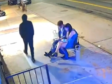 Ο 32χρονος Ryan Carson και μια γυναίκα διακρίνονται να κάθονται σε ένα παγκάκι σε μια στάση λεωφορείου στο Bedford-Stuyvesant και να συνομιλούν, καθώς επέστρεφαν στο σπίτι τους από έναν γάμο στο Long Island λίγο πριν από τις 4 π.μ. τη Δευτέρα.