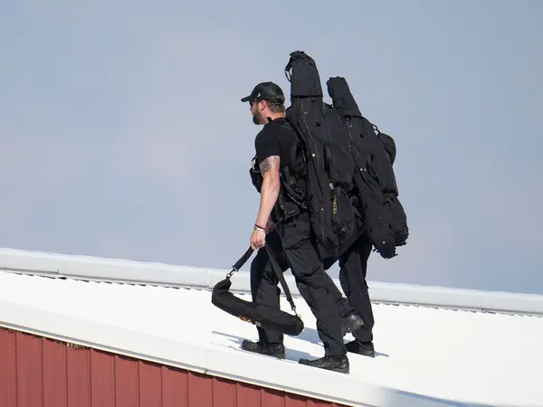 Όπως αναφέρει το NBC News, δείχνει υποστηρικτές του Τραμπ να παρακολουθούν τον πρώην πρόεδρο να δίνει λόγο από μερικές εκατοντάδες μέτρα μακριά, προτού παρατηρήσουν έναν άνδρα να σέρνεται στην ταράτσα ενός κοντινού κτιρίου.