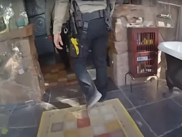 Όπως μεταφέρει και το Sky News, tο βίντεο που τραβήχτηκε από σερίφη της κομητείας Σάντα Φε δείχνει αξιωματικούς μέσα και έξω από την ιδιοκτησία στο βόρειο Νέο Μεξικό, διεξάγοντας έρευνα με έναν γερμανικό ποιμενικό.