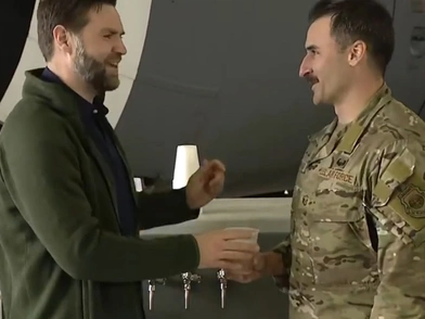 Ο αντιπρόεδρος των ΗΠΑ Τζέι Ντι Βανς πραγματοποίησε ολιγόωρη στάση στην αμερικανική αεροπορική βάση Ράμσταϊν στη Γερμανία, κατά την πτήση της επιστροφής του από την Ινδία.