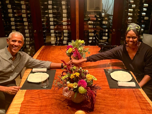 «Είμαι τόσο τυχερός που μπορώ να μοιραστώ τις περιπέτειες της ζωής μου μαζί σου. Σ' αγαπώ» έγραψε ο Μπαράκ Ομπάμα, δημοσιεύοντας μία φωτογραφία με τη Μισέλ Ομπάμα, ενόσω δειπνούν.