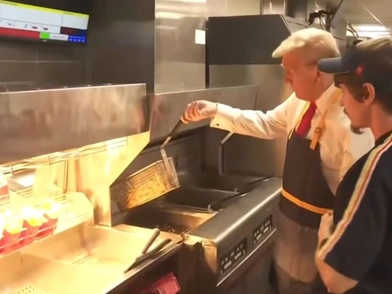 Ο Ρεπουμπλικανός υποψήφιος, επισκέφθηκε κατάστημα της γνωστής αλυσίδας και τηγάνισε πατάτες, κατηγορώντας την αντίπαλό του ότι είπε ψέματα για το ότι έχει δουλέψει στο παρελθόν σε κατάστημα της συγκεκριμένης αλυσίδας fast food.