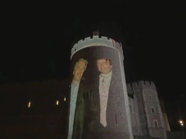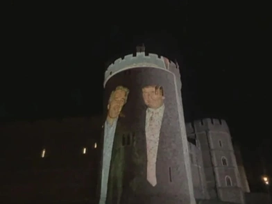 Μια ομάδα διαδηλωτών ξεδίπλωσε κοντά στο κάστρο ένα τεράστιο πανό με τη φωτογραφία των δύο ανδρών και εν συνεχεία προέβαλε εικόνες και αποσπάσματα - μεταξύ τους και μια επιστολή που φέρεται να έγραψε ο Τραμπ προς τον Έπσταϊν - σε πύργο του κάστρου, κίνηση που οι αρχές περιέγραψαν ως «δημόσιο κόλπο».