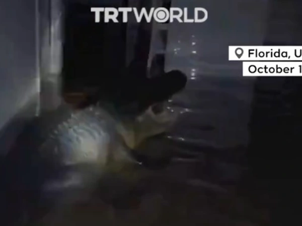 Σε άλλη μία περίπτωση, ζευγάρι αντίκρισε μέσα στο πλημμυρισμένο σπίτι του έναν αλιγάτορα να στέκει ακίνητος, όπως φαίνεται και σε βίντεο του TRT World.