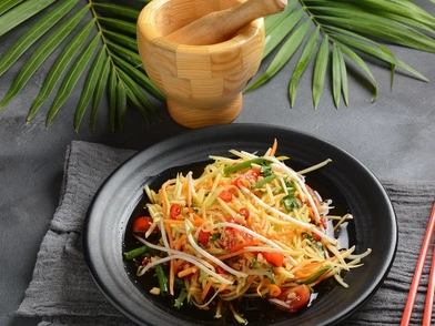 - Som tam από την Ταϊλάνδη: Εκτός από λεπτές λωρίδες πράσινης παπάγιας, αυτή η σαλάτα περιλαμβάνει συνήθως ψητά φιστίκια, πράσινα φασόλια, ντομάτες και μια πικάντικη σάλτσα.