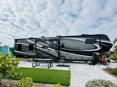 «Ελάτε να κάνετε μια περιήγηση στο νέο μας σπίτι με ρόδες», προσκαλεί ο Jason τους ακόλουθους σε ένα από τα κλιπ. «Αυτό είναι ένα 2023 Grand Designs Momentum 410 Toy Hauler. Με μήκος κάτι λιγότερο από 14 μέτρα, αυτό το RV σίγουρα μας καλύπτει».