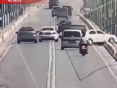 Κάμερα ασφαλείας κατέγραψε την πτώση του οχήματος. Φαίνεται πως ο οδηγός προσπάθησε να κάνει προσπέραση σε κάποιο προπορευόμενο όχημα. Ταυτόχρονα το ίδιο έκανε και ένα άλλο αυτοκίνητο.