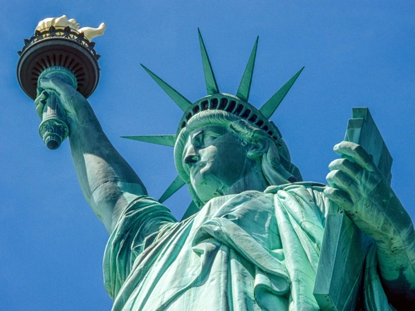 Το άγαλμα είναι ένα δώρο από τη Γαλλία προς τις ΗΠΑ και δεσπόζει στη νησίδα Λίμπερτυ Άιλαντ στην είσοδο του λιμανιού της Νέας Υόρκης.