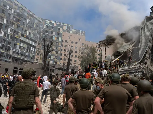 «Ένα από τα κτίρια του ινστιτούτου καταστράφηκε εν μέρει και πολλοί άνθρωποι παγιδεύτηκαν κάτω από τα συντρίμμια», ανέφερε το υπουργείο Άμυνας στο Telegram.