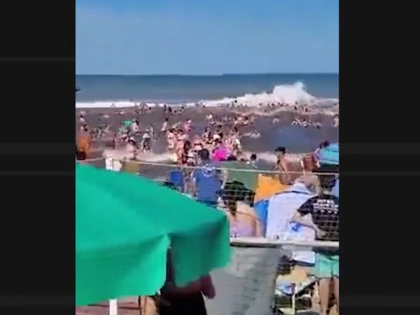 Σύμφωνα με την εφημερίδα Sun, τρομακτικές εικόνες κάνουν τον γύρο του διαδικτύου και δείχνουν τη θάλασσα να εισβάλλει ξαφνικά στην ξηρά, στην παραλία στην παραθαλάσσια πόλη Santa Clara del Mar, αιφνιδιάζοντας τους λουόμενους που τρέχουν να σωθούν, ενώ ο πανικός απλώνεται στο πλήθος.