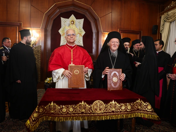 Από την πλευρά του, ο Πάπας Λέων ΙΔ' ανέφερε ότι από τον εορτασμό της 1700ής επετείου της Α΄ Οικουμενικής Συνόδου της Νίκαιας και εμπνευσμένοι από την προσευχή του Ιησού, ώστε όλοι οι μαθητές Του να είναι ένα, «ενθαρρυνόμαστε στην προσπάθειά μας να επιδιώξουμε την αποκατάσταση της πλήρους κοινωνίας μεταξύ όλων των χριστιανών, ένα έργο που αναλαμβάνουμε με τη βοήθεια του Θεού».