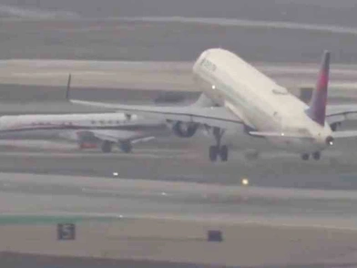 Τότε, ένα αεροσκάφος της Delta Airlines ξεκίνησε τη διαδικασία απογείωσης και σηκώθηκε από το έδαφος λίγο πριν καταλήξει πάνω στο τζετ, τύπου Embraer E135, που κινούνταν κάθετα και μετέφερε την ομάδα μπάσκετ του κολλεγίου Γκονζάγκα, για ένα παιχνίδι με την αντίστοιχη του UCLA.