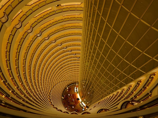 Η πραγματικότητα αυτή δεν φαίνεται να ισχύει για το πεντάστερο ξενοδοχείο Grand Hyatt Shanghai, στην Κίνα, το οποίο διαθέτει ένα αίθριο τόσο ψηλό και σπειροειδές που προκαλεί υψοφοβία στους επισκέπτες του.