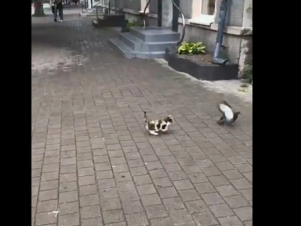 Τρέχοντας με «πολύ μεγάλη ταχύτητα», πηδάει στον αέρα χωρίς να καταφέρνει να πιάσει κάτι. Ήταν η πρώτη «αποτυχημένη» προσπάθεια της μικρής γάτας να πιάσει περιστέρι, με το ίντερνετ να λιώνει πάρα ταύτα.