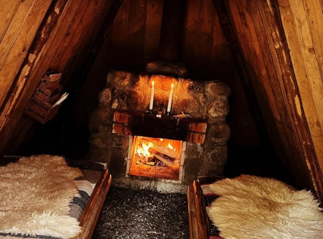 Μέσα υπάρχουν δύο μονά κρεβάτια με υπνόσακους, κουβέρτες από δέρμα προβάτου και μαξιλάρια, ώστε να μπορούν οι επισκέπτες να κοιμούνται στα ζεστά.