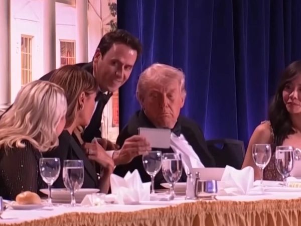 Μέσα σε δευτερόλεπτα όλα άλλαξαν στο δείπνο των Ανταποκριτών του Λευκού Οίκου παρουσία του Ντόναλντ Τραμπ. Στα βίντεο που έχουν κάνει τον γύρο του κόσμου, δευτερόλεπτα πριν ακουστούν οι πυροβολισμοί και επικρατήσει πανικός στην αίθουσα ένας άνδρας βρίσκεται ανάμεσα στον Ντόναλντ και στη Μελάνια Τραμπ δείχνοντάς τους ένα χαρτάκι για το οποίο δείχνουν ιδιαίτερο ενδιαφέρον.
