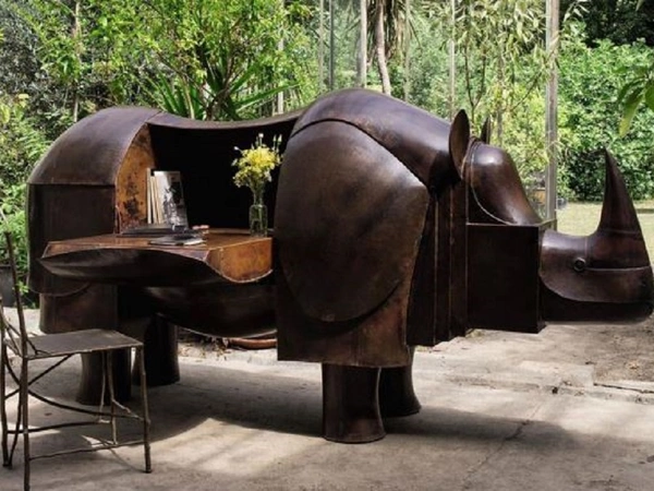 Μικρογραφίες ενός μπαρ, ενός γραφείου εργασίας, καθώς και ένα θησαυροφυλάκιο και διακοσμητικά λαμπάκια συμπληρώνουν τη μορφή του Ρινόκερου. Το απροσδόκητα πρακτικό ζωάκι σηματοδότησε και τη γενικότερη φιλοσοφία που θα ακολουθούσε ο Λαλάν, ο οποίος σε μία πρωτότυπη αναστροφή, δημιουργεί κοσμητικά αντικείμενα με προδιαγραφές επίπλων, αντί για έπιπλα με αισθητική υπόσταση.