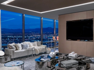 Τι παίρνεις με αυτά τα 100.000 δολάρια το βράδυ; Δύο πολύ μεγάλες κρεβατοκάμαρες, κρεβάτι μασάζ και ένα τζακούζι που βλέπει ολόκληρο το Las Vegas. Επιπλέον έχεις υπηρεσίες μπάτλερ, μία πληρωμένη tour σε ιδιωτικές συλλογές τέχνης και πολλές ακόμα ανέσεις.