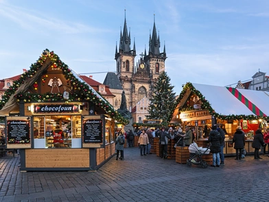 Το ιδιαίτερο μείγμα μπαρόκ και γοτθικής αρχιτεκτονικής, η άκρως ατμοσφαιρική Παλιά Πόλη, η εμβληματική γέφυρα του Καρόλου, τα σοκάκια της ιστορικής συνοικίας Mala Strana, το παραμυθένιο κάστρο, οι πύργοι και οι εκκλησίες προσφέρουν ένα σκηνικό που ταιριάζει γάντι με τη γιορτινή ατμόσφαιρα.