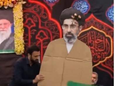 Την ανάρτηση του X, συνοδεύει μια επεξεργασμένη φωτογραφία με τον Μοτζτάμπα, του οποίου ο κορμός είναι από χαρτόνι.