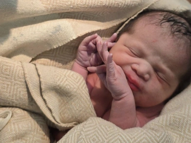 Γεννήθηκε δύο εβδομάδες πριν από την τελική ημερομηνία τοκετού και είχε την τύχη να είναι στο αεροσκάφος και δύο τραυματιοφορείς, που χειρίστηκαν το περιστατικό με τον καλύτερο δυνατό τρόπο.