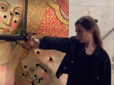 Βαρύ πρόστιμο επιβλήθηκε σήμερα σε μια πολιτικό της Ελβετίας η οποία φέρεται ότι χρησιμοποίησε την εικόνα της Παναγίας της Βρεφοκρατούσας ως στόχο σκοποβολής.