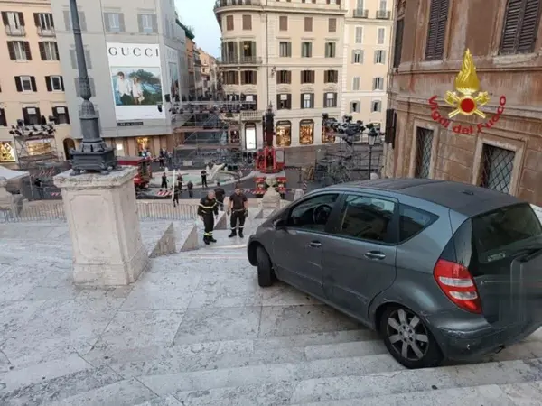Οι Αρχές ανέσυραν το όχημα με γερανό, τοποθετώντας ξύλινες σανίδες και με πολύ προσεκτικές κινήσεις, για την αποφυγή περαιτέρω ζημιών στα μάρμαρα που επενδύουν τα σκαλοπάτια. δεδομένης και της μεγάλης πολιτιστικής σημασίας του πασίγνωστου μνημείου στο κέντρο της Αιώνιας Πόλης.