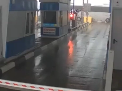 Η στιγμή του δυστυχήματος καταγράφηκε από κάμερα ασφαλείας, η οποία δείχνει το λεωφορείο να χάνει τον έλεγχο και να πέφτει πλάγια στον σταθμό διοδίων, πριν ανατραπεί.