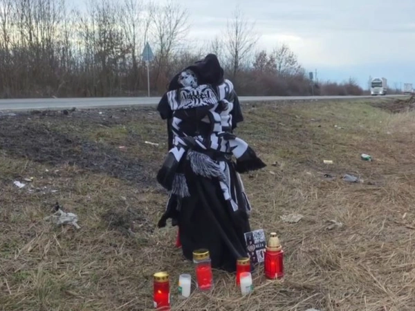 Στη βάση του, ανάμεσα στα χόρτα, κόκκινα κεράκια έχουν ανάψει στη μνήμη των αδικοχαμένων οπαδών, μαζί με μηνύματα που άφησαν όσοι βρέθηκαν εκεί για να αποτίσουν φόρο τιμής.