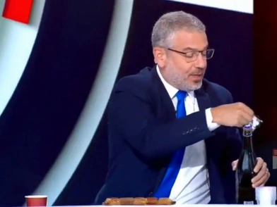 Συγκεκριμένα, σε βίντεο που κυκλοφόρησαν στα social media, και ήταν σε θέση να επιβεβαιώσει το BBC, φαίνεται ο Ισραηλινός παρουσιαστής της εκπομπής «The Patriots», Yinon Magal να ανοίγει μια φιάλη σαμπάνιας και να μοιράζει γλυκά, ενώ το κοινό στο στούντιο χειροκροτούσε.
