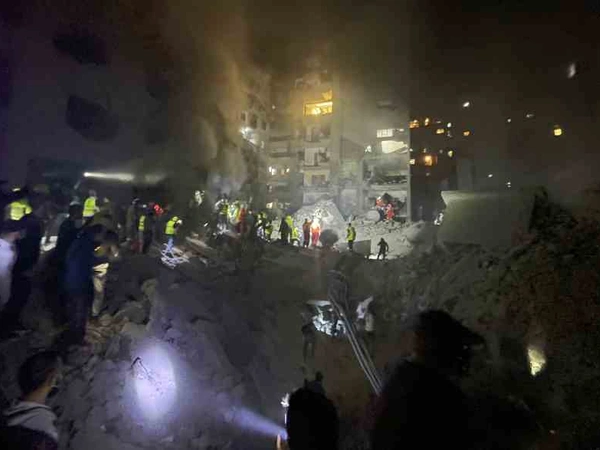 Βίντεο από την πληγείσα περιοχή δείχνουν ένα ισοπεδωμένο κτίριο και πλήθος κόσμου να έχει σπεύσει στα ερείπια, αναζητώντας εγκλωβισμένους.