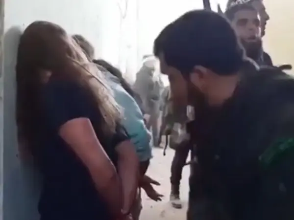 Το βίντεο δείχνει τις γυναίκες όλες μέλη των Ισραηλινών Αμυντικών Δυνάμεων (IDF), παραταγμένες σε έναν τοίχο, με τα χέρια δεμένα. Τα πρόσωπα ορισμένων από αυτές φέρουν μώλωπες, μελανιές και αίμα.