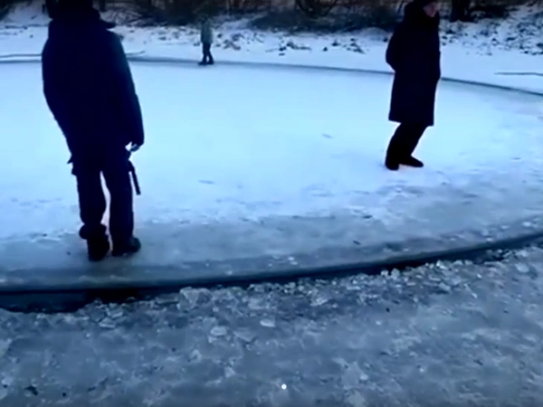 Ο πάγος στον ποταμό σχημάτισε έναν τέλειο παγωμένο κύκλο, ενώ πλάνα δείχνουν περαστικούς να περπατούν στο κυκλικό παγωμένο κομμάτι που περιστρέφεται.