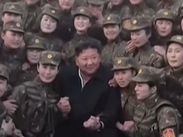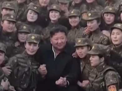 Στο τέλος, γυναίκες και άνδρες του στρατού στριμώχτηκαν προκειμένου να φωτογραφηθούν με τον χαμογελαστό Κιμ, ενώ στη συνέχεια ζητοκραύγαζαν.