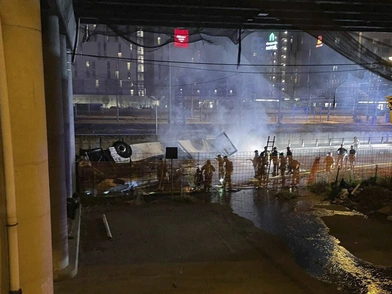 Το λεωφορείο έπεσε από την γέφυρα πάνω στις σιδηροδρομικές γραμμές και σύμφωνα με πληροφορίες, εγκλωβισμένοι φώναζαν για βοήθεια αρκετή ώρα και τα σωστικά συνεργεία επιχείρησαν μετά από 30 λεπτά. Οι πυροσβέστες επιχείρησαν όλη τη νύχτα και μέχρι τα ξημερώματα ήταν αδύνατη η μετακίνηση του λεωφορείου από τις γραμμές καθώς ελλοχεύει ο κίνδυνος έκρηξης.