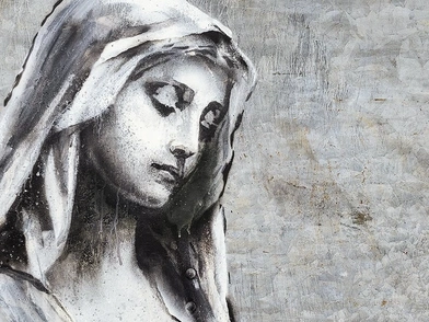Στο νέο του έργο με τίτλο Mother & Child (Μητέρα και Παιδί), που δημοσίευσε και στο Instagram, ο Banksy εικονίζει μία γυναίκα με μαντήλα, να θηλάζει το βρέφος της, με τη σημειολογία να παραπέμπει στην Παναγία και τον Χριστό.
